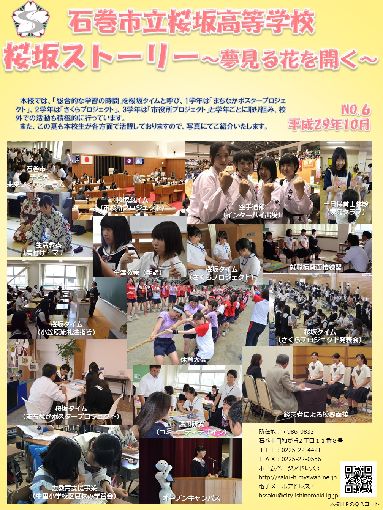 本校では、平成28年度から学校紹介用ポスター「桜坂ストーリー」を制作して、石巻地区の各中学校や塾、教育関係団体にお届けし、学校活動の様子をお知らせしています。