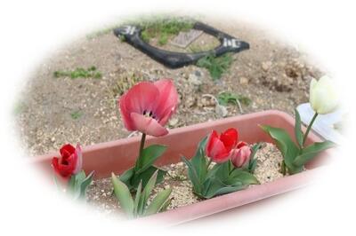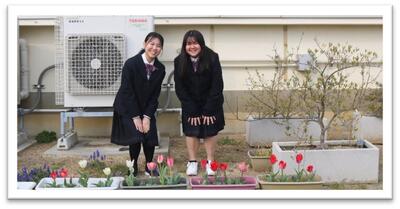 チューリップの球根を事務室の方々にアドバイスを頂きながら昨年の秋に植えました。花が咲いて学校が華やかになって嬉しかったです。